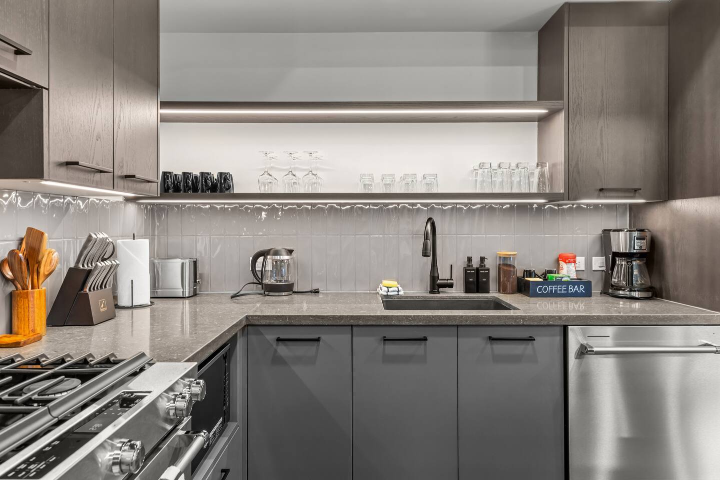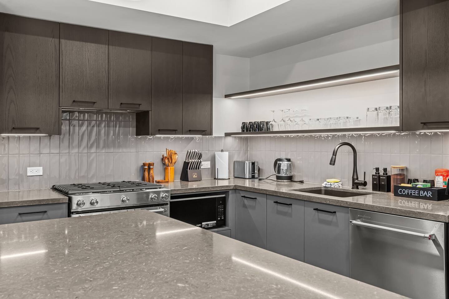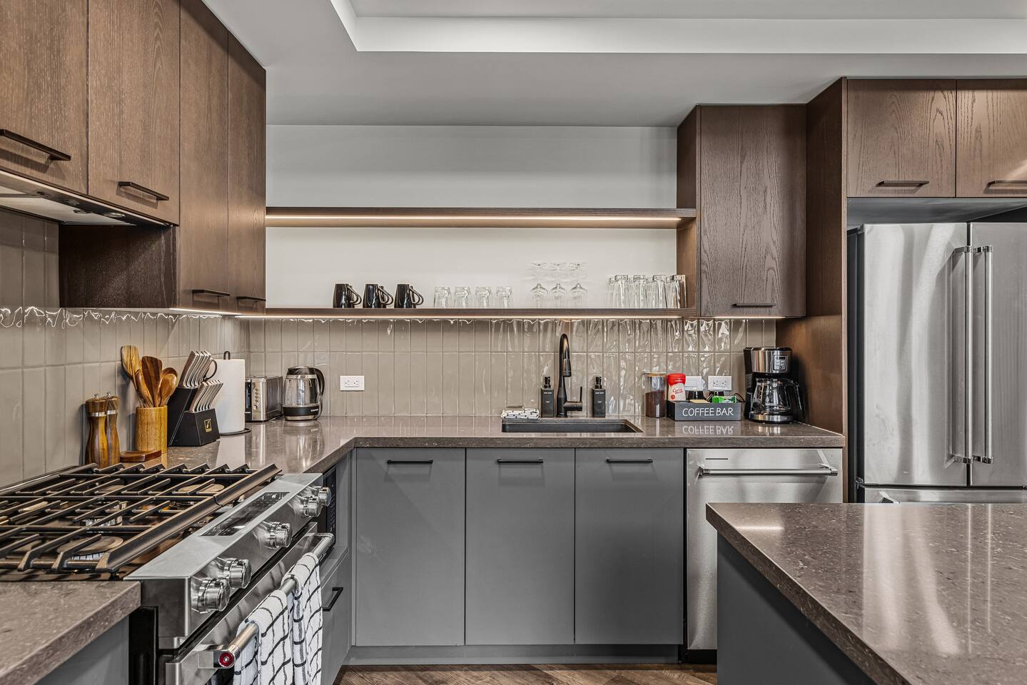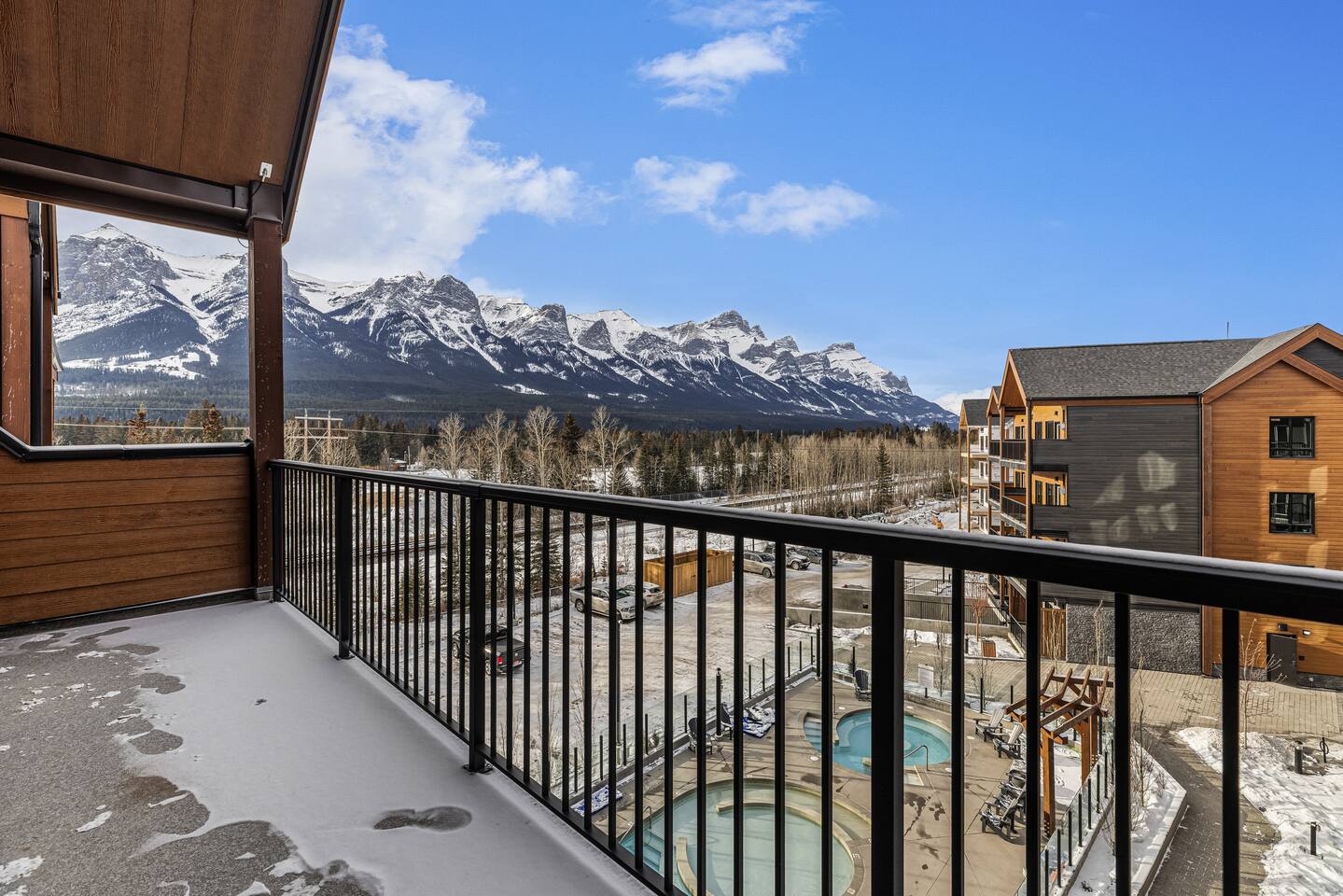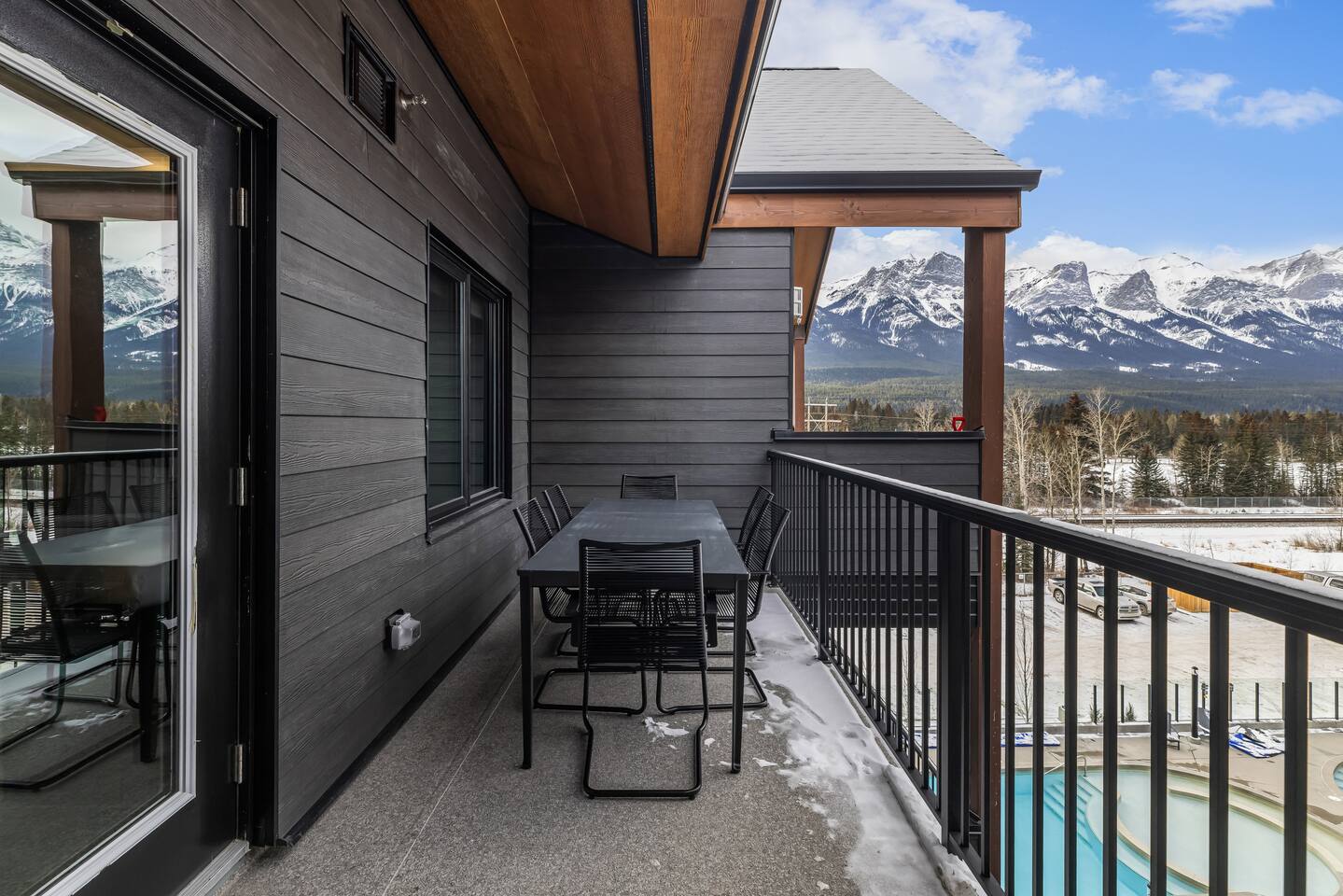 The space is thoughtfully designed to offer spacious & luxurious comfort, privacy, and incredible views of the rocky mountains. ✦ Living Areas (Both Units)✦ ✧ Large gas Fireplace ✧ 75 inch smart TV with cable / live TV ✧ Pull out couch that converts into to a comfortable bed (sheets & linens provided) ✦ Kitchen (Both Units)✦ ✧ Fully equipped kitchen with modern high-end appliances ✧ Stainless Steel Oven & Natural Gas Stove Top with 4 burners ✧ Granite Countertops ✧ Large Kitchen Islands ✧ Full size Fridge w/ built in Water Filter and Ice-maker ✧ Includes all Cookware, Dishes, Utensils, & Glasses ✧ Dishwasher (w/pods), kettle, toaster, & coffee maker ✧ Coffee & Tea Bar includes coffee grinds, a selection of teas, sugar, & coffee mate ✦ Sleeping Arrangements ✦ ✧ 2X King Size Beds ✧ 3X Queen Size Beds ✧ 3X Queen Size Beds ✧ 2X Pull-out Sofa Beds (linens provided) ✧ 1X Bunk Bed ✦ Bathrooms - 5 Full ✦ ✧All include bath towels, face towels, hand towels, & pool towels for each guest ✧ Showers & Tubs come standard with body-wash, shampoo, & conditioner ✧ Hair Dryer ✧ Cleansing Wipes ✧ His & Hers Sinks & Vanity ✦ Laundry ✦ ✧ En suite Washer & Dryer with detergent provided ✦Private Patios ✦ ✧ BBQs w/ natural gas hookup and utensils ✧ Outdoor dining table ✧ Outdoor Conversation Set ✧ Hanging Chair ✦ Parking ✦ ✧ 2 Underground Heated Assigned spot is included ✧ Visitor parking available surface level Premier Suite - comfortably sleeps 10 guests Penthouse Loft - comfortably sleeps 6 guests
