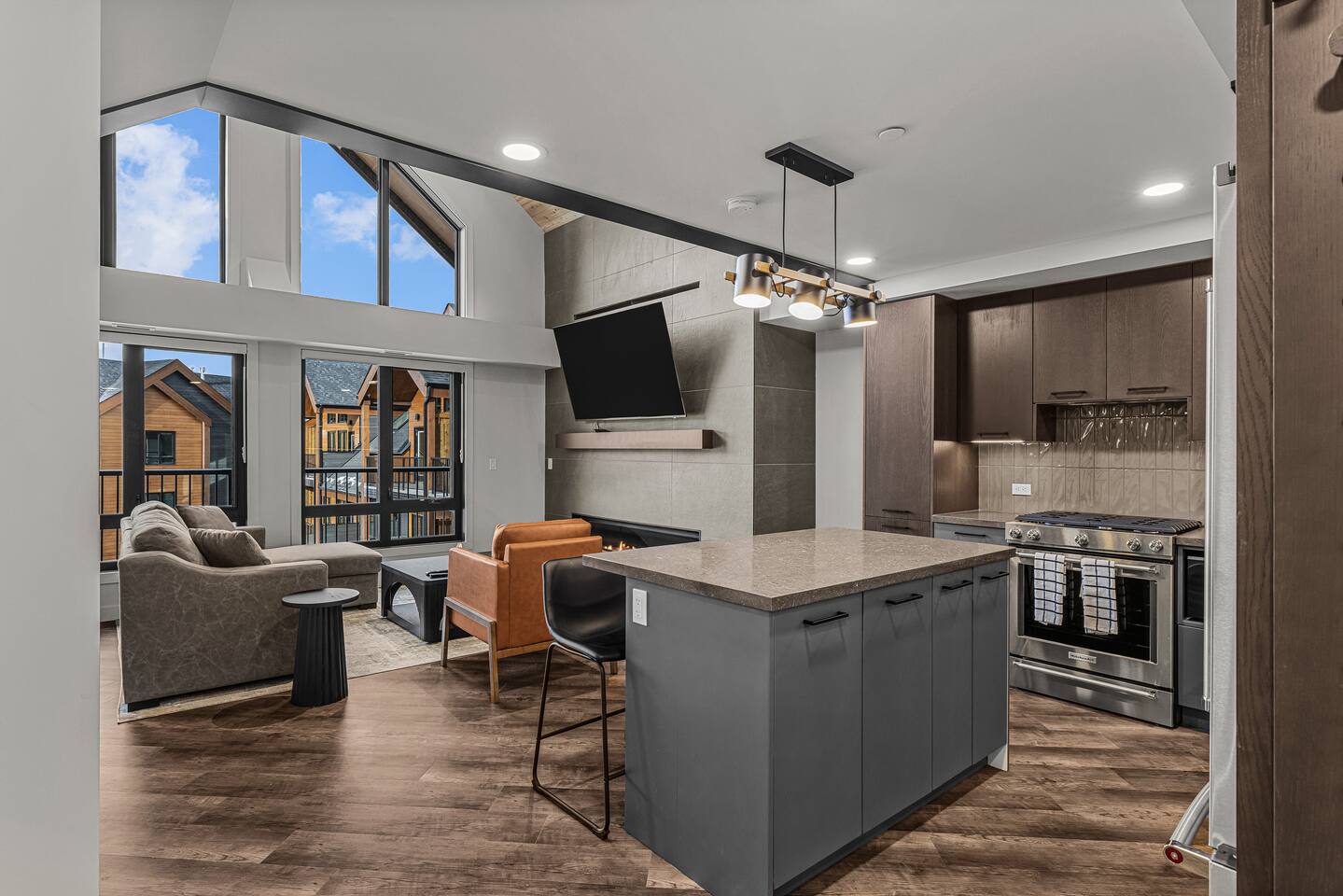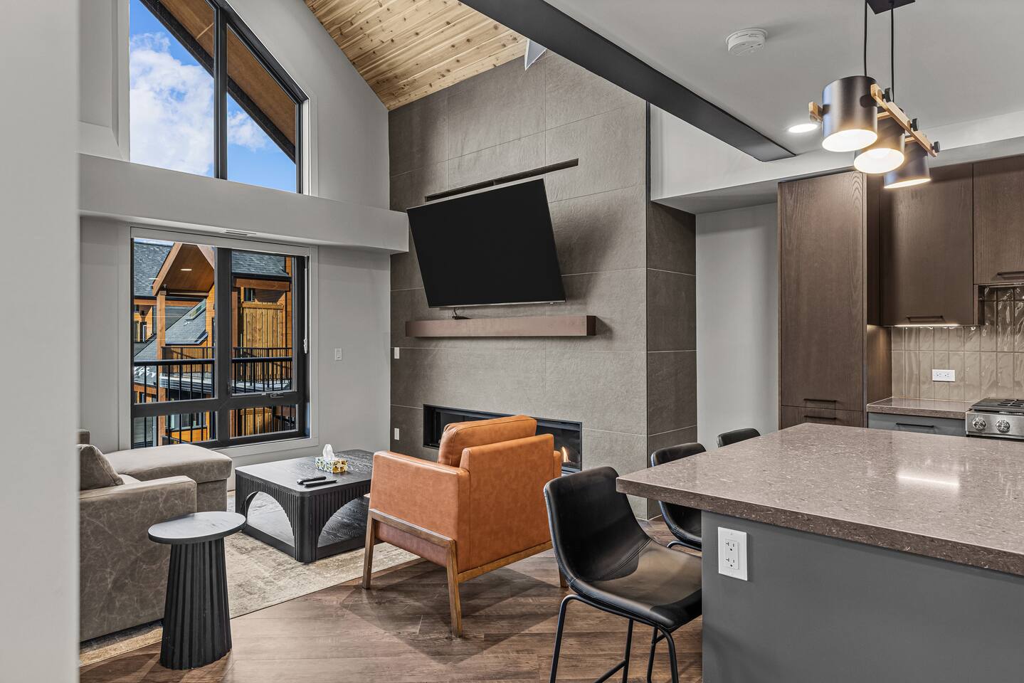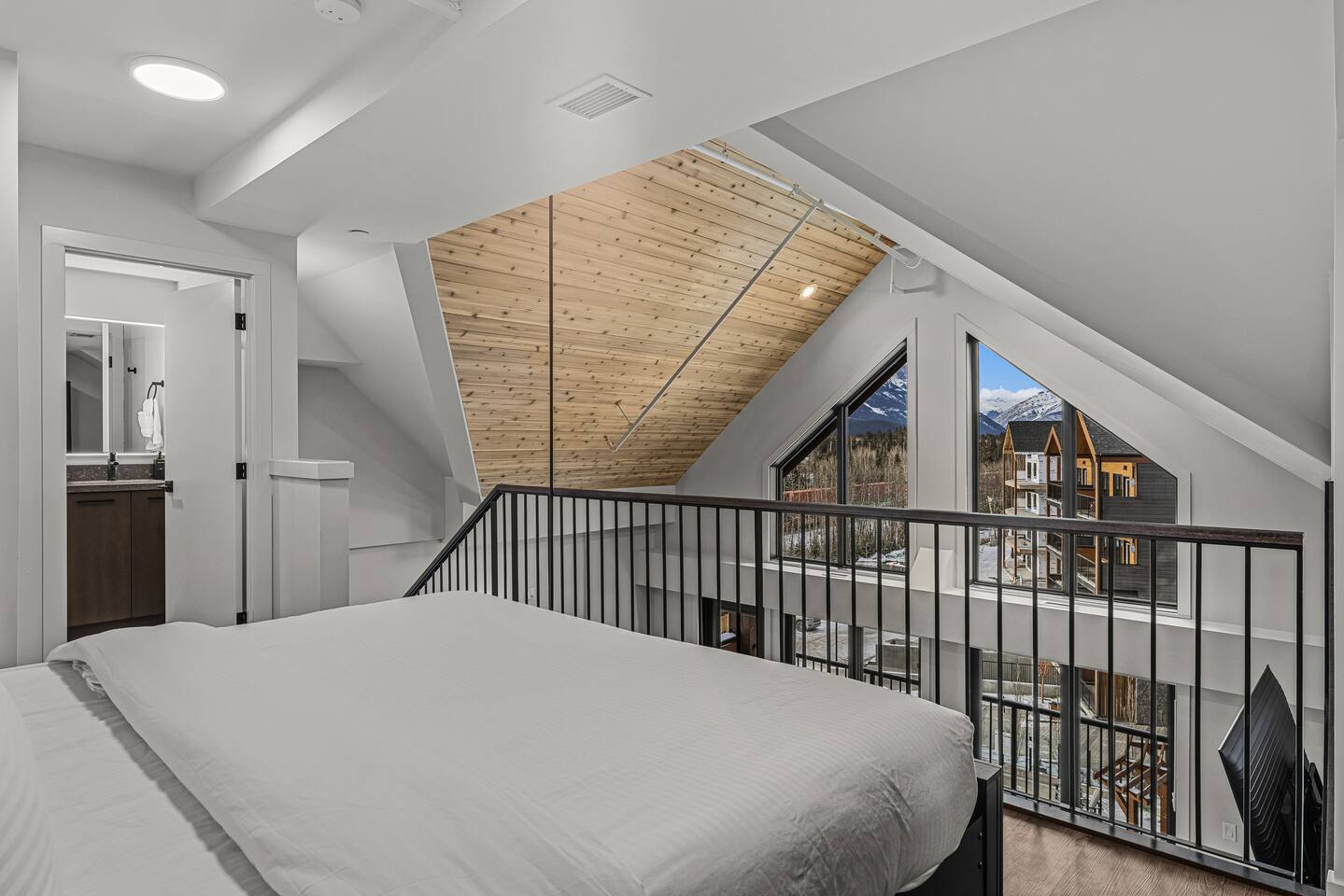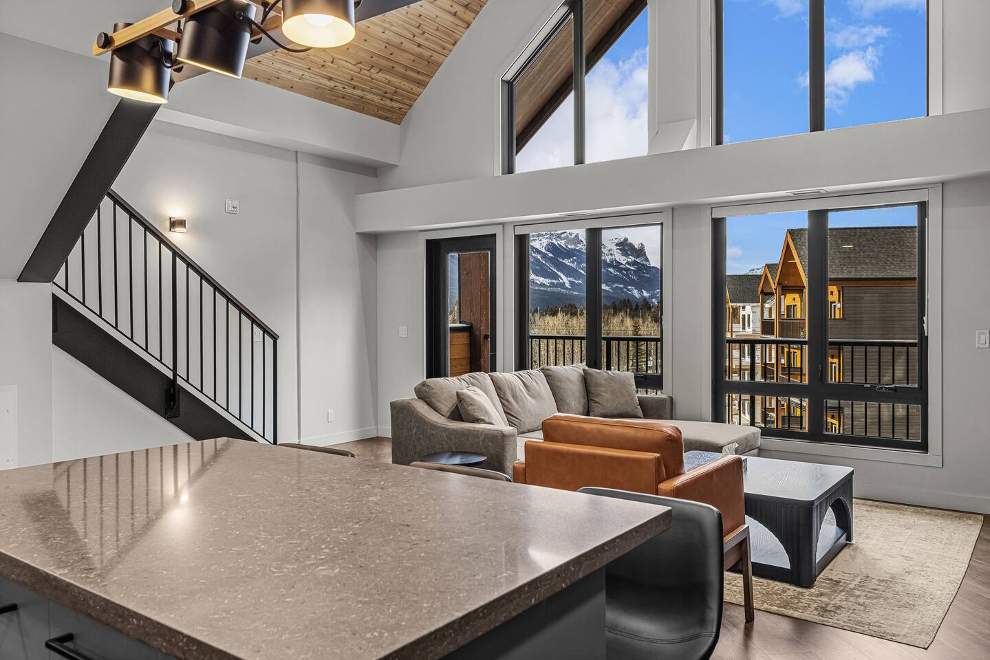 Welcome to your Canmore mountain retreat! This loft offers amazing mountain views and is perfectly located for exploring Canmore and Banff National Park. ✅Corner Penthouse Loft with 2 Floors ✅ Large 75" smart TV & WIFI ✅ 2 Bedrooms ✅ 2 Full Bathrooms ✅ Private Balcony w/ BBQ ✅ Fully Equipped Kitchen - High-End Appliances ✅Air Conditioning ✅ 18Ft High Ceilings for lots of Natural Light 📍 Minutes from downtown Canmore and a short drive to Banff National Parks